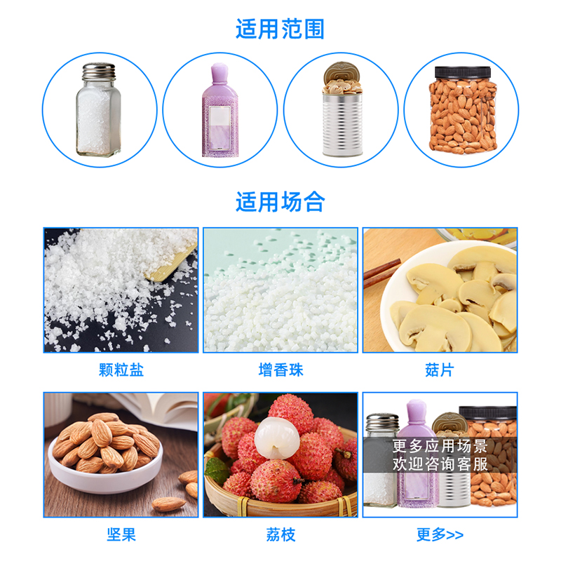 多頭秤灌裝機尼為機械顆粒鹽多頭秤灌裝機,是一款針對顆粒鹽物料特性研發(fā)的自動固型灌裝設備。該設備可全程自動化完成顆粒鹽的自動計量、定量送料、精準裝罐、成品輸送等全套包裝流程,無需人工過多干預,大幅提升生產線自動化水平。機身整體采用食品級SUS304不銹鋼打造,不僅外觀美觀大方,更能滿足鹽業(yè)生產要求,確保顆粒鹽在包裝過程中不受污染,設備制造精良、操作便捷、運行穩(wěn)定,是鹽業(yè)規(guī)模化生產的理想選擇。