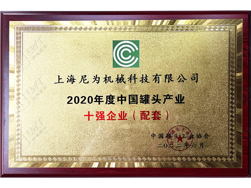 恭喜尼為榮獲“2020年度中國罐頭產業十強企業(配套)”