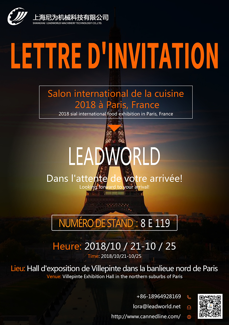 尼為機械誠邀您蒞臨2018年在法國巴黎舉辦的國際食品展覽會